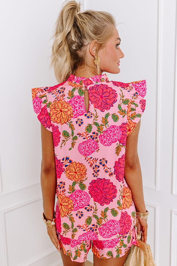 - Step into summer sweetness with this delightful floral top, bursting with bright, bubbly colors. With the cutest flutter sleeves and a charming ruffle neckline, it's the perfect blend of playful and pretty. Whether you are pairing it with your favorite jeans or a trendy skirt, this top is sure to add a sprinkle of sunshine to your wardrobe!