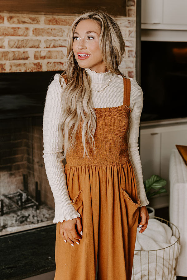 Gather The Courage Smocked Jumpsuit In Chocolate