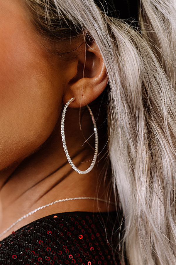 People are sure to gaze your way when you accessorize with these luxe earrings featuring dainty but large silver hoops covered in shimmering faux diamonds!