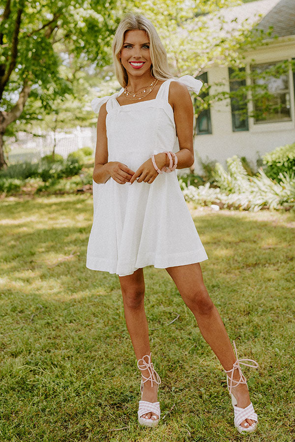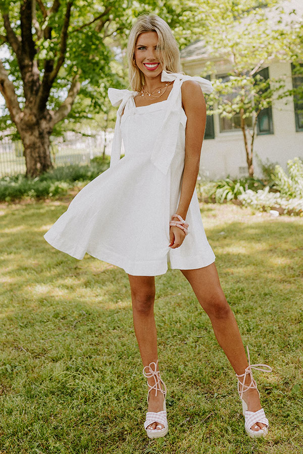 You won't find a more darling summer piece than our adorable little white 'Gazing Into Your Eyes' dress featuring lightweight material, a square neckline and upper back, tie closure shoulder straps, and a flattering babydoll silhouette that falls into a straight mid-thigh length hemline!