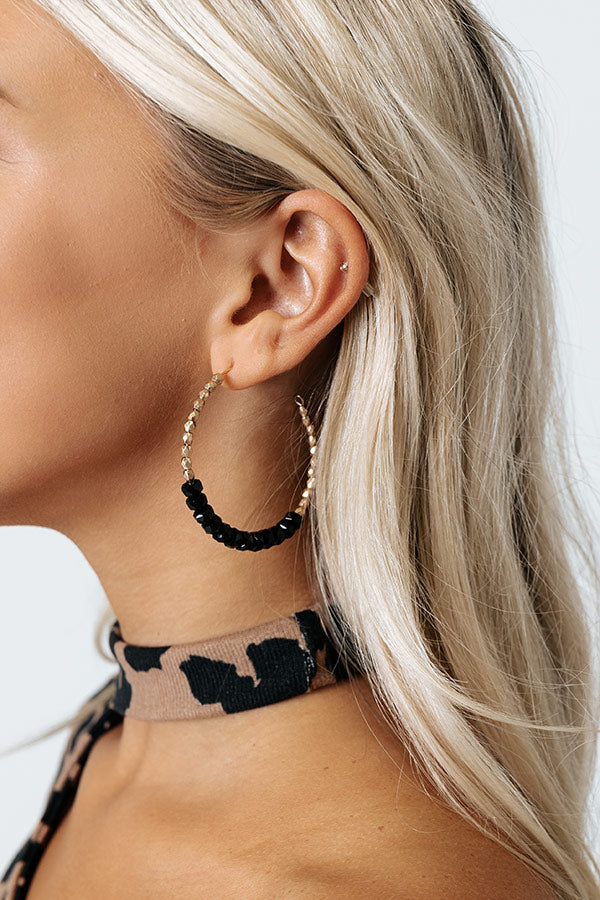 We have no doubt you will genuinely love these pretty earrings featuring dainty dangling gold beaded hoops with larger black beaded detailing!