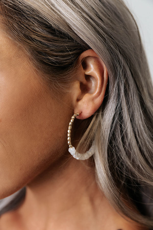 We have no doubt you will genuinely love these pretty earrings featuring dainty dangling gold beaded hoops with larger white beaded detailing!