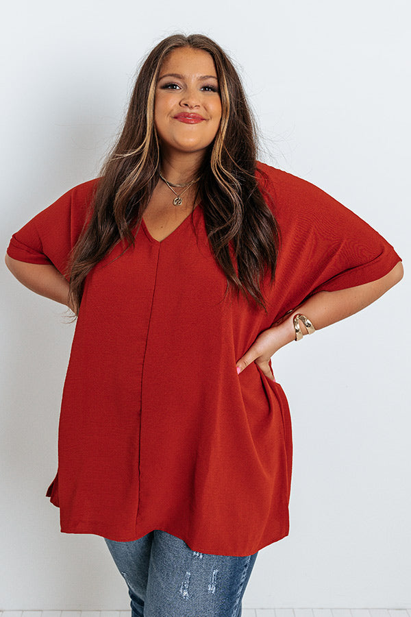 Keep it casual but cute in our versatile plus size scarlet colored 'Genuine Love Shift Top' featuring lightweight flowy material, a v-cut neckline, short sleeves, and a relaxed silhouette that falls into a straight mid-thigh length hemline!