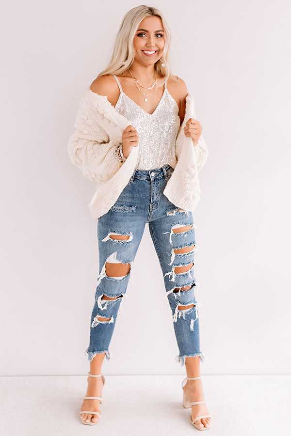 When you are getting all glammed up to go out with your girls, there is no better piece to throw on than this champagne colored tank featuring lightweight material covered in shimmering sequins, a wide v-cut neckline, adjustable spaghetti straps with a scooped back, and a relaxed silhouette that falls into a straight hemline! Measurements
