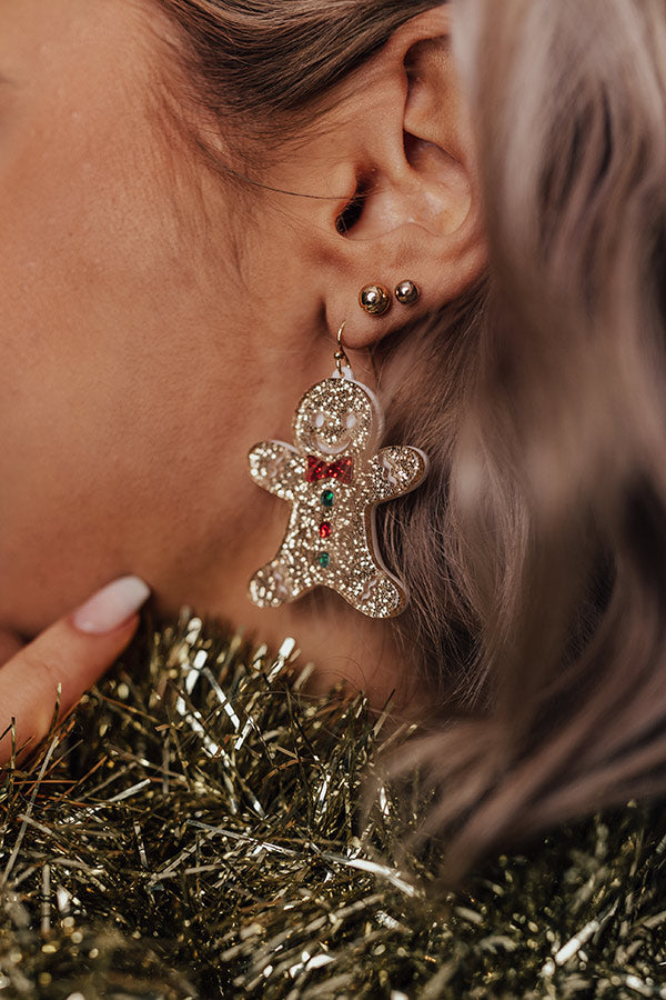 Your holiday outfit will not be complete without these festive statement earrings featuring dangling gold gingerbread men!