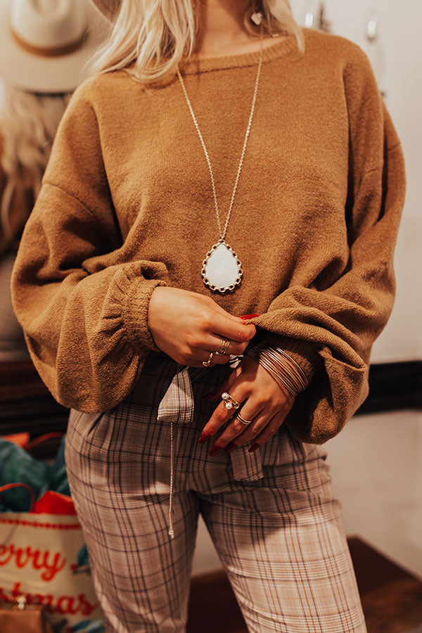 Stay casual but comfy in our adorable iced mocha colored 'Gingersnap Sweater' featuring soft knit material, a rounded neckline, long oversized bubble sleeves with fitted cuffs, and a slouched silhouette that falls into a straight hemline!