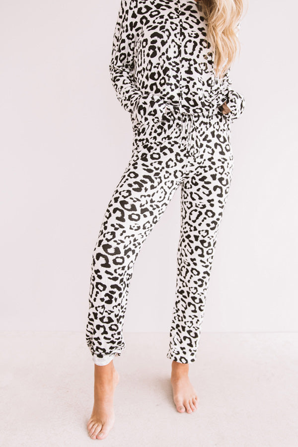 These joggers are perfect for the "girl on the move" with its soft lightweight material patterned with a bold black and white leopard print, soft material, elastic waistband with a tie belt, and relaxed fitting pant legs with fitted cuffs! You can style this piece a variety of different ways, like with a simple black tee and sneakers, or for an adorable two piece look, you can style it with our "Girl On The Move Leopard Hoodie!" Measurements