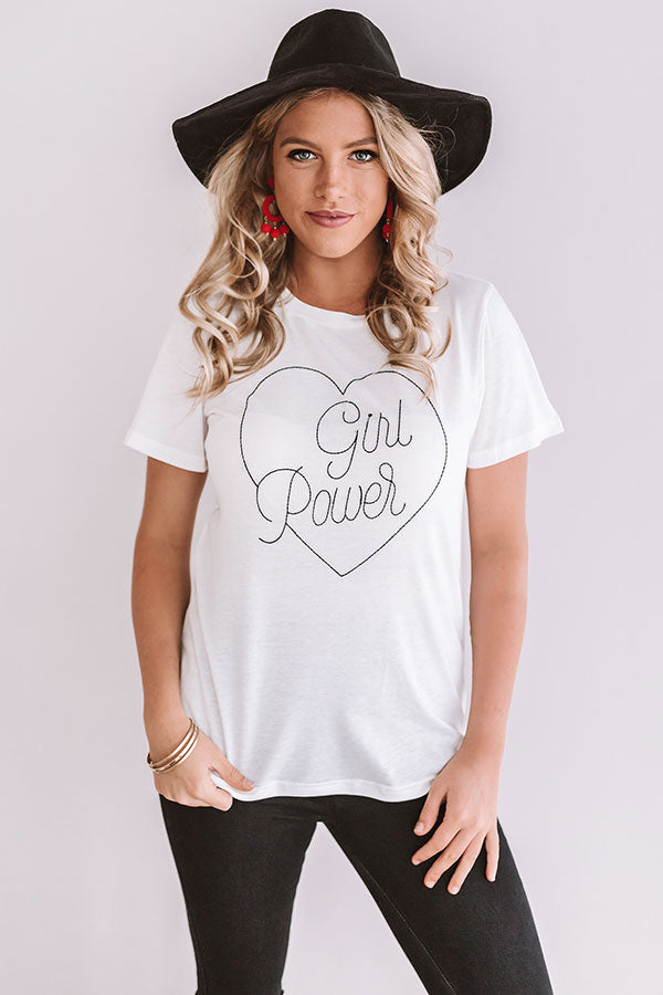 Never apologize for being a powerful girl, matter of fact, we think you should flaunt it with this girl power shift tee! Show how fierce you are in this graphic shirt when you style it with black bell bottoms, wedges, and a black hat! Measurements