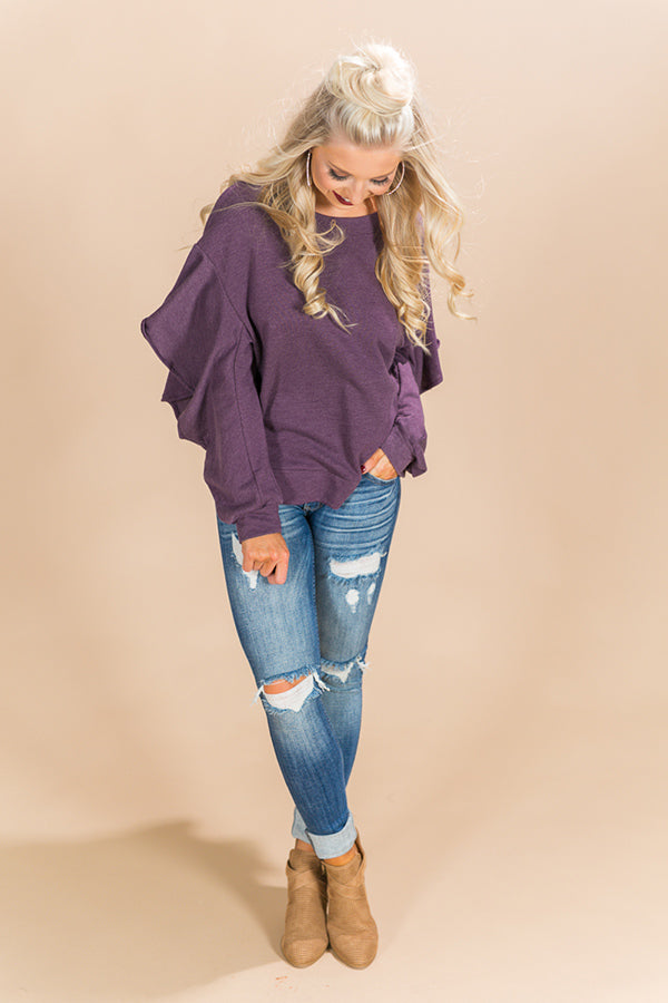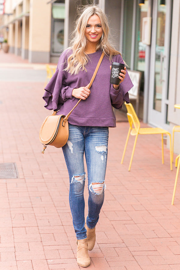 Everyone knows a girl's best friend is a good sweatshirt and this one is so fun and sassy! We are obessed with the loose fit and ruffles on the sleeves! You can dress it up with some faux leather leggings or put over some of your fave distressed skinnies!
