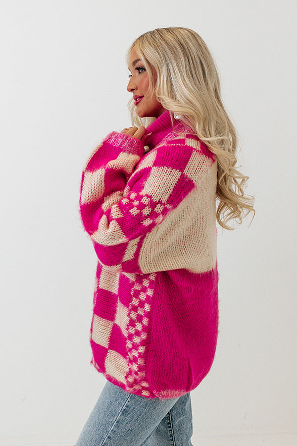- Soft, hot pink and cream knit material with a checkered pattern