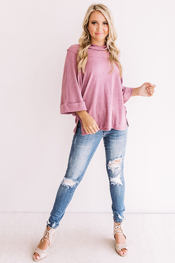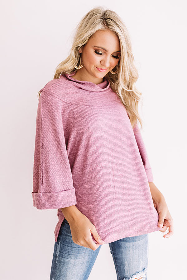 When you're rushing to find an outfit and headed out for a "girls night" throw on this vineyard grape shift top featuring a high rounded neckline with a turtleneck, a subtle ribbed texture, exposed seams, flared 3/4 length sleeves with rolled cuffs, a relaxed bodice, and a side split hemline with a straight front and rounded back! For a GNO you can style this piece with some distressed ankle skinnies and neutral wedge, or you can pair it with some black flares and grey accents like our "Name Dropper Hat" and "The Jess Faux Leather Heel!" Measurements