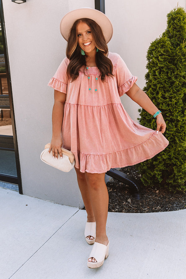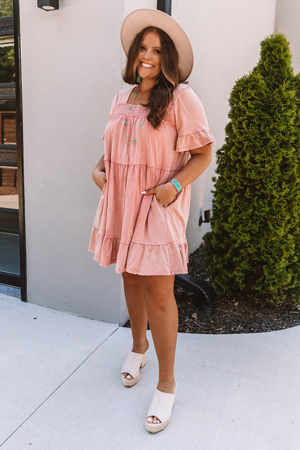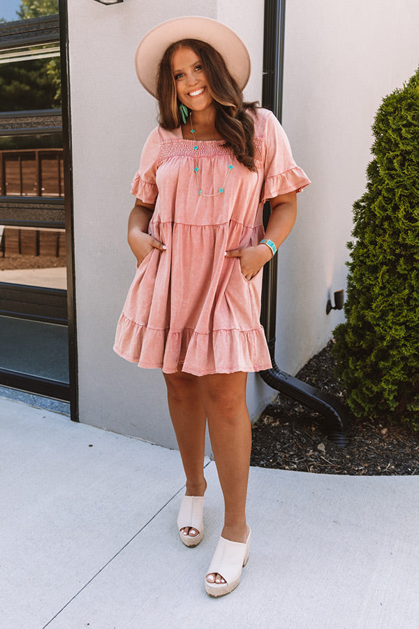 Plus Size - People are guaranteed to be impressed with your amazing style when you wear our darling light pink 'Give Me A Break' dress featuring lightweight flowy material, a square neckline with smocked detailing, short sleeves with flared cuffs, hidden side pockets, and a relaxed but flattering babydoll silhouette that falls into an uneven ruffled mid-thigh length hemline! Measurements