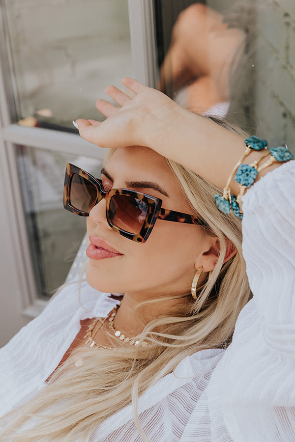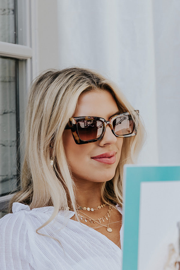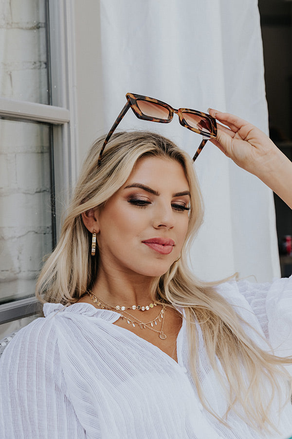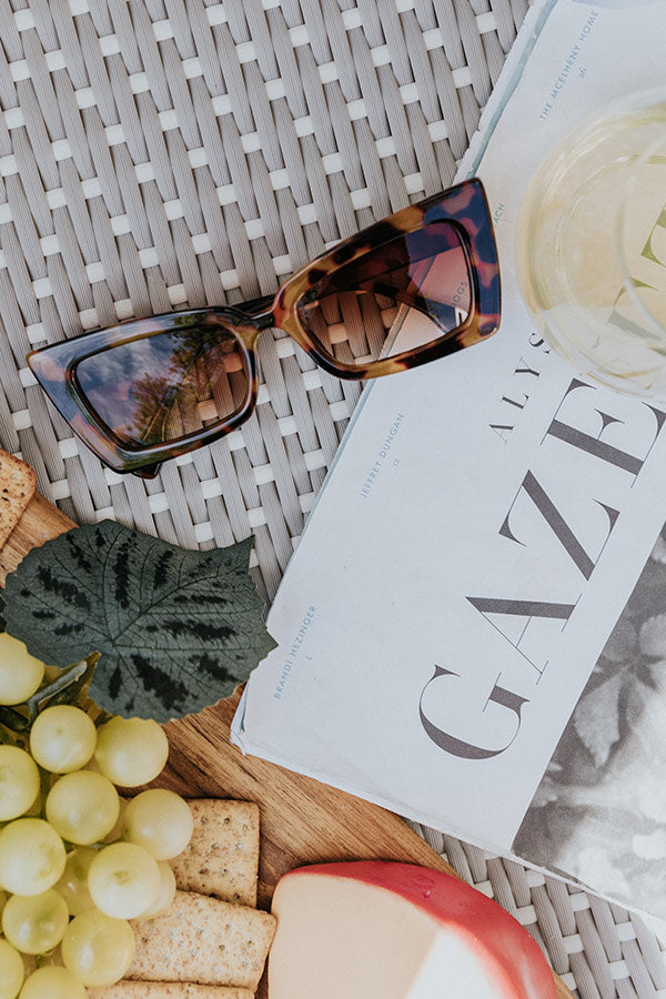 Hang out in the sun in style with these chic sunnies featuring trendy tortoiseshell print pointed rectangle frames and brown tinted lenses!