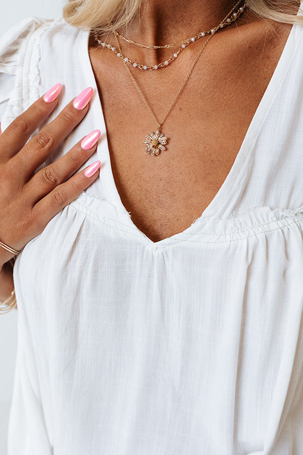 Accessorize with luxury in our pretty gold 'Give You The World' necklace featuring three layered pieces: a dainty choker, a medium length tiny beaded chain, and a longer chain with a shimmering rhinestone pendant!