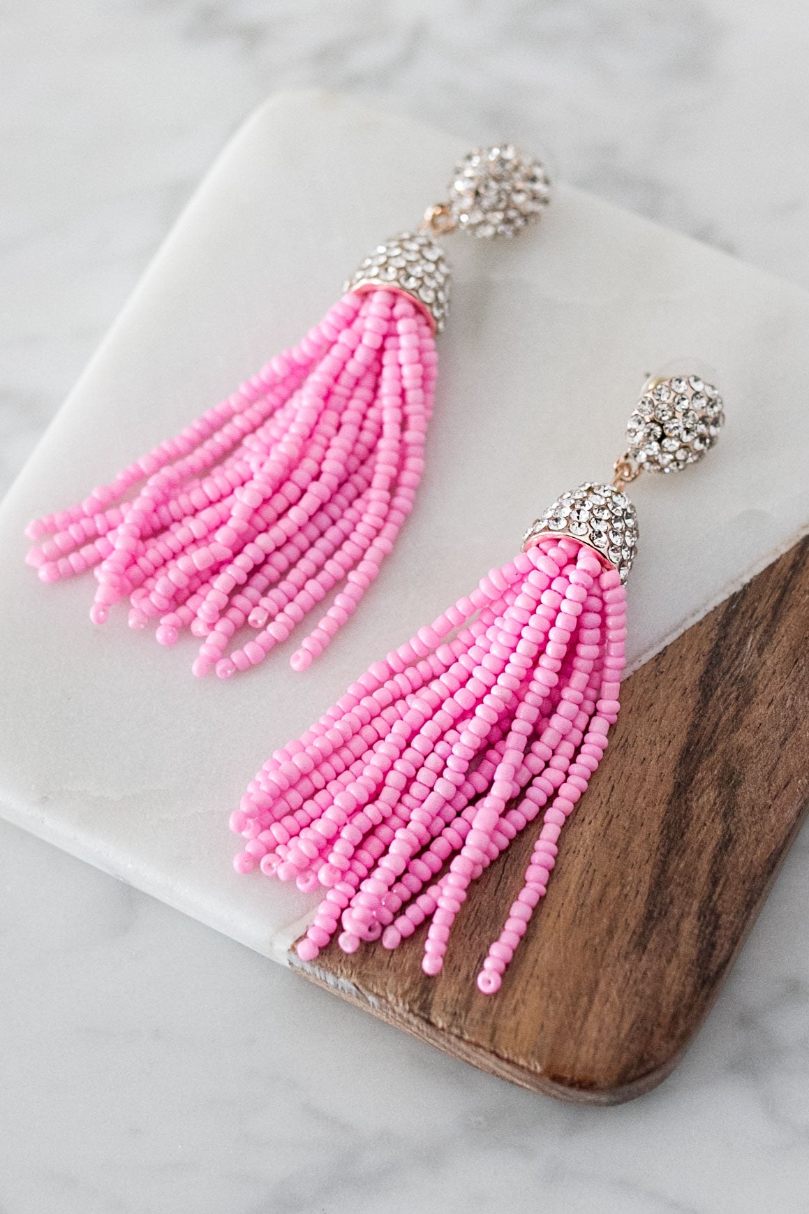Glitz And Glam Tassel Earrings In Pink