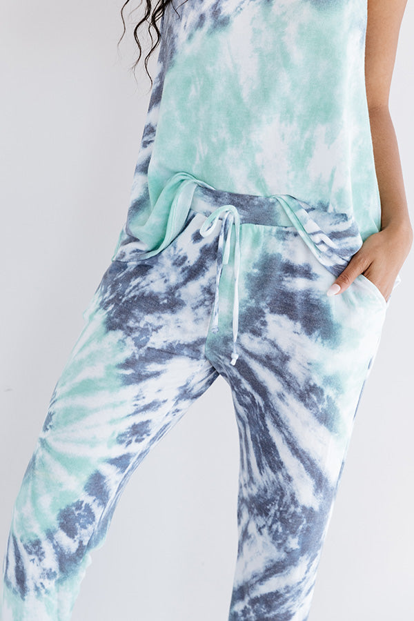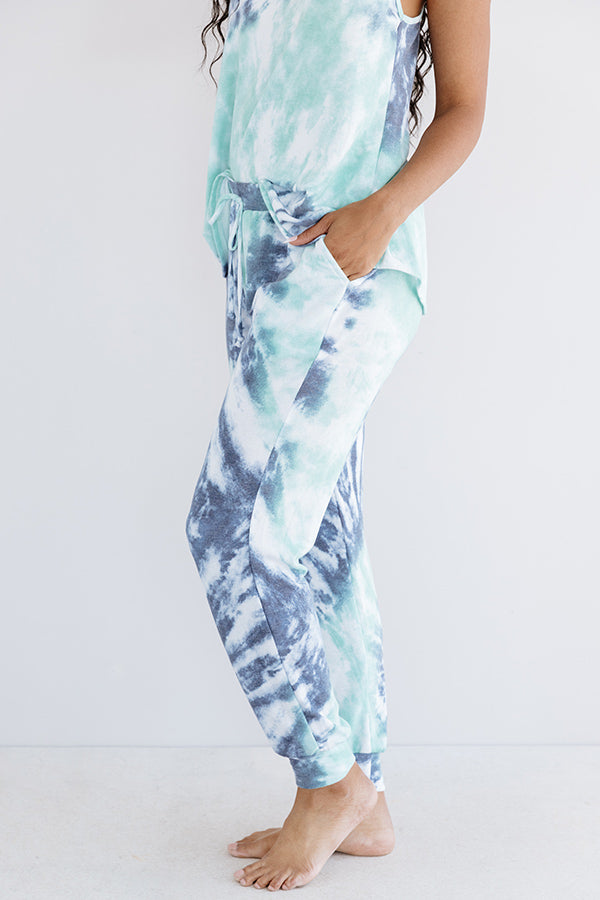 You are sure to be a "go getter" in these adorable joggers featuring lightweight breezy material patterned with aqua hued tie dye, a wide smocked waistline with a tie belt, accent side pockets, and a relaxed pants silhouette that falls into fitted ankle length hemlines! This comfy piece styles perfectly with our matching "Go Getter Tie Dye Shift Top in Aqua" or our "Go Getter Tie Dye Shift Tank in Aqua," a scrunchie, and some fuzzy slippers for the ultimate two-piece lounge look!