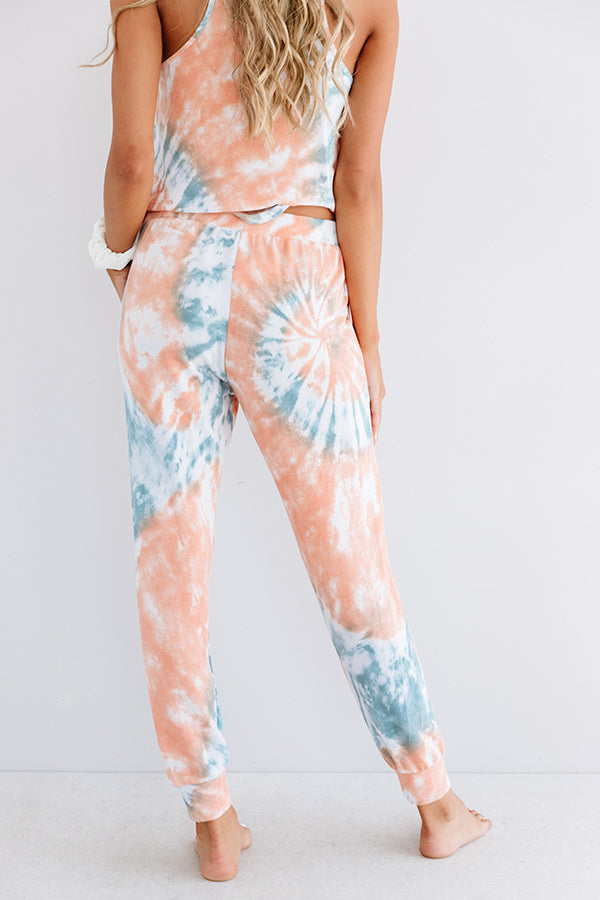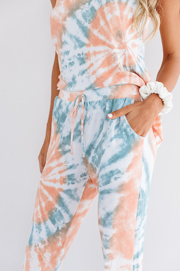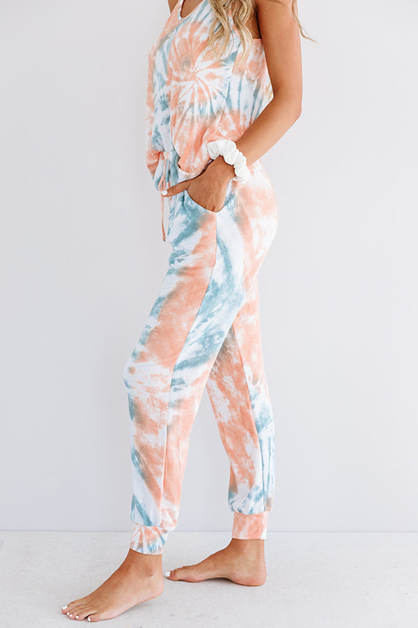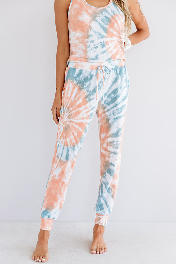 You are sure to be a "go getter" in these adorable joggers featuring lightweight breezy material patterned with blue and orange hued tie dye, a wide smocked waistline with a tie belt, accent side pockets, and a relaxed pants silhouette that falls into fitted ankle length hemlines! This comfy piece styles perfectly with our matching "Go Getter Tie Dye Shift Top in Orange" or our "Go Getter Tie Dye Shift Tank in Orange," a scrunchie, and some fuzzy slippers for the ultimate two-piece lounge look!