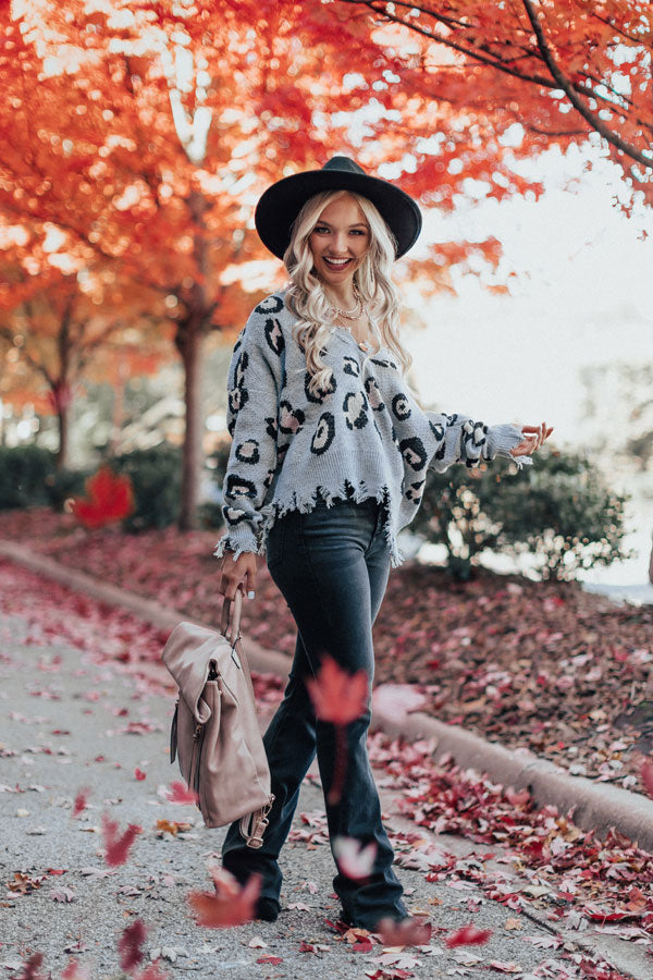 Cozy up for fall in our light grey "Goal Setter" sweater featuring soft lightweight tight knit material with subtle texturing, distressed trim detailing, a v-cut neckline that can be worn off one shoulder, long loose sleeves, and a relaxed silhouette that falls into an uneven hemline! This adorable cold weather cutie styles perfectly with some dark wash flares, a black faux suede hat, and a neutral backpack, or with some distressed black ankle skinnies and "The Seraphina Faux Leather Wedge in Grey!" Measurements