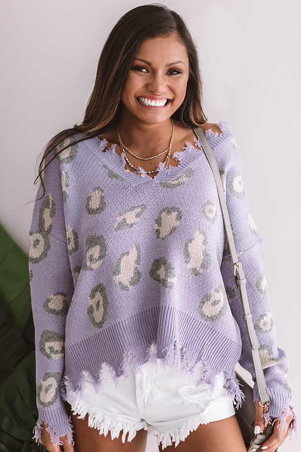 Cozy up for fall in our lavender colored "Goal Setter" sweater featuring soft lightweight tight knit material with subtle texturing, distressed trim detailing, a v-cut neckline that can be worn off one shoulder, long loose sleeves, and a relaxed silhouette that falls into an uneven hemline! This adorable cold weather cutie styles perfectly with some distressed white shorts and a neutral wedge and crossbody, or with some black flares, "The Jess Faux Leather Heel in Warm Taupe," and our "Cabernet At The Cabin Hat!" Measurements
