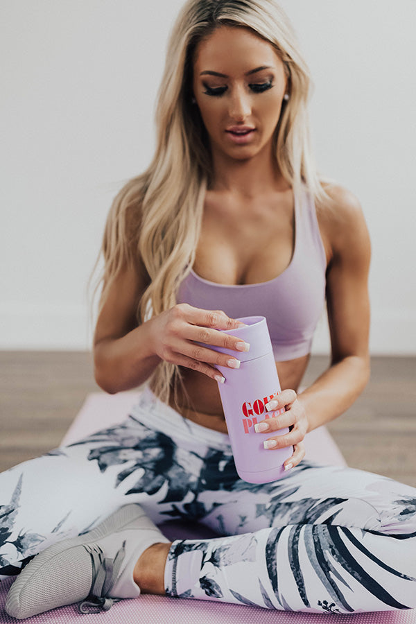 Stay hydrated in style with this trendy light lilac colored thermal tumbler featuring a stainless steel silhouette with adorable "Going Places" lettering on the side and a snap closure lid!