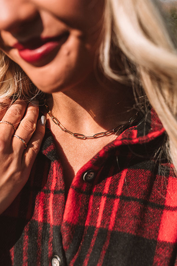 Add a daring but dainty touch to your look with our darling gold 'Golden Hills' necklace featuring a large link choker!