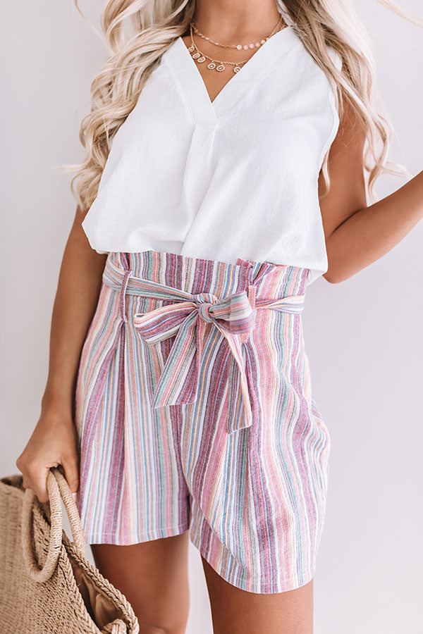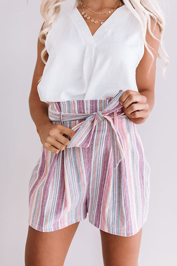 Golden Shores High Waist Stripe Shorts In Vineyard Grape