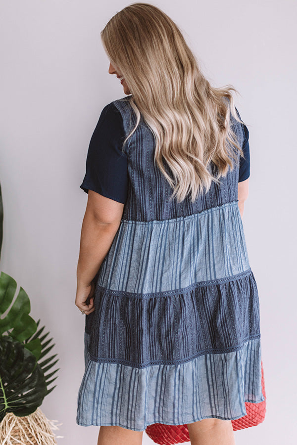 Plus Size - When you can't figure out what to wear in the morning, we guarantee you could never go wrong with this babydoll dress! It has various blue panels with subtle stripes and a darling flowy fit! Pair with some colored accessories and opened toed heels for a refined but relaxed summer outfit for those endless Malibu nights! Measurements