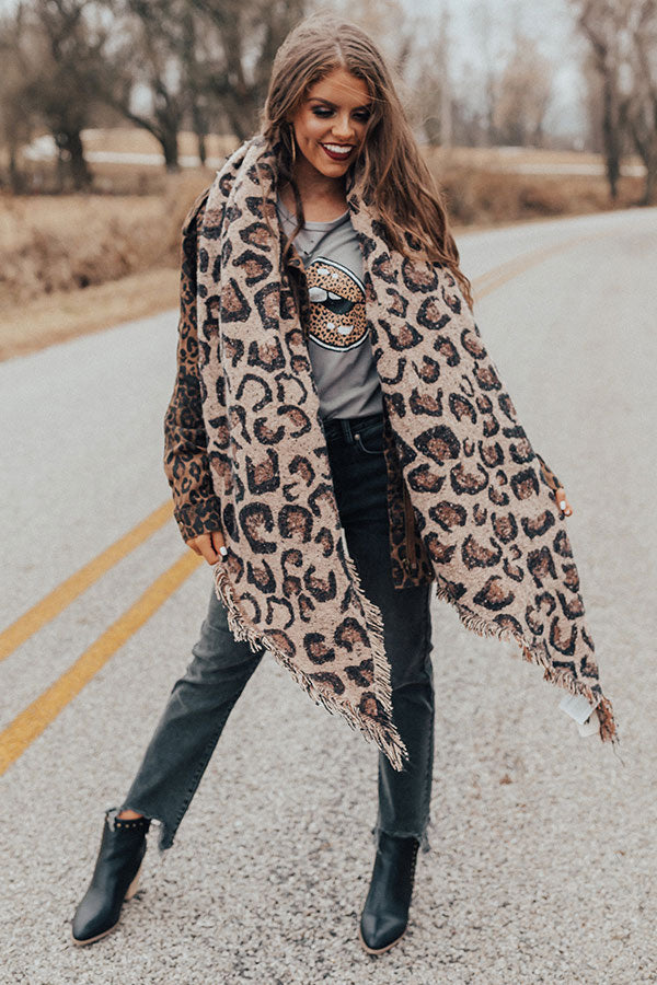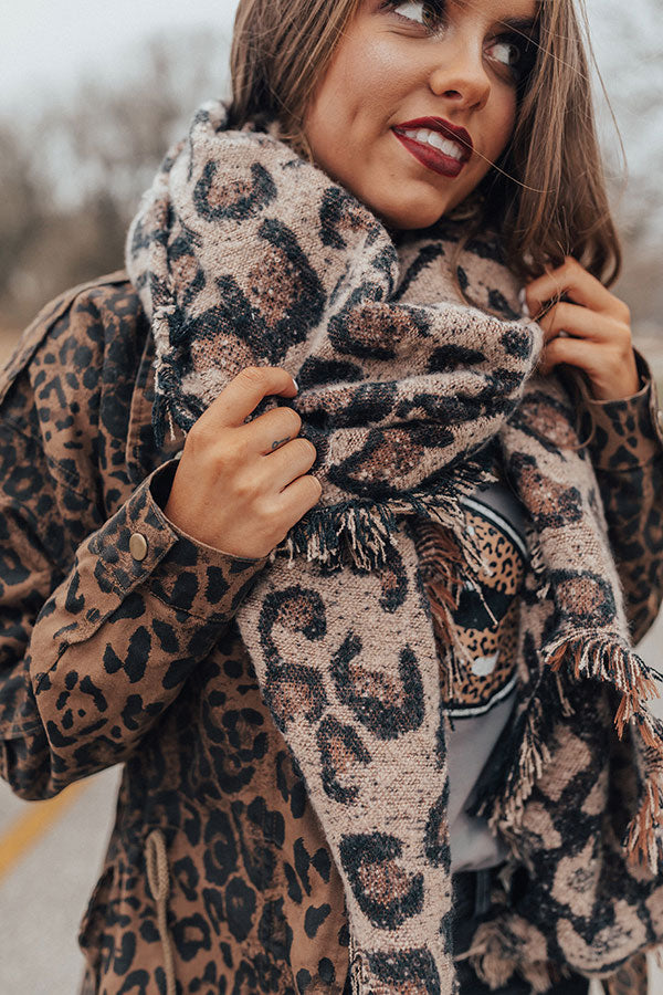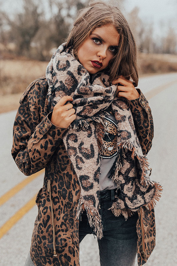 Add an extra layer of warmth and style to your OTD with our neutral hued "Good Advice" scarf featuring soft lightweight tight knit material patterned with a bold black and brown leopard print and fringed edge detailing!
