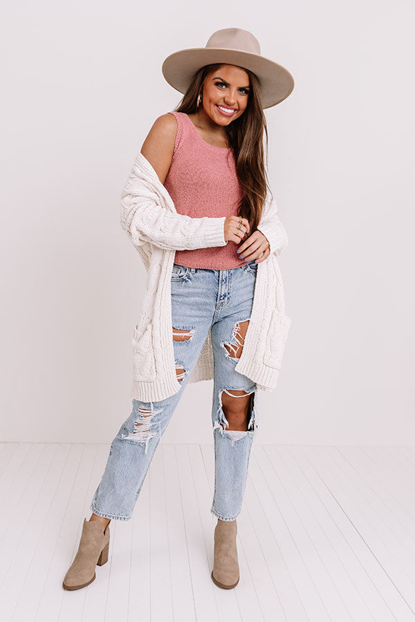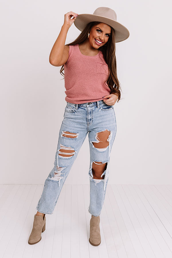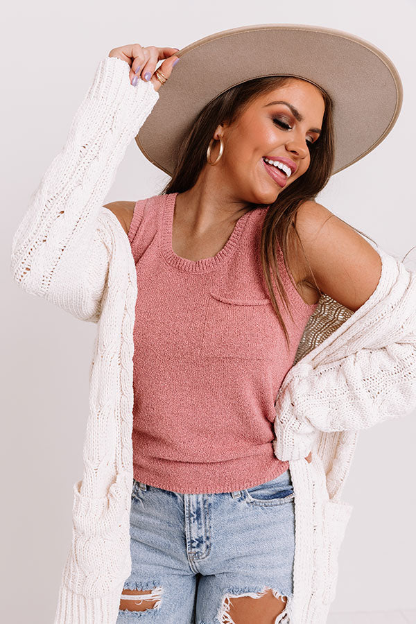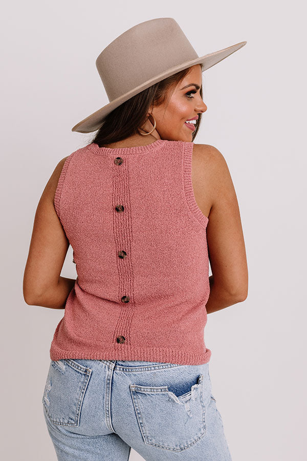 Believe us when we say our blush colored "Good Connection" top is a fall layering essential with its soft lightweight tight knit material, a scooped neckline, wide 3-inch sleeveless shoulder straps, a single accent chest pocket, ribbed trim detailing, a tortoiseshell button up back, and a relaxed silhouette that falls into a straight hemline!
