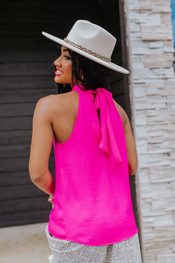 Add a touch of luxury to your look with our chic fuchsia 'Good For You' shift top featuring lightweight satin material, a high neckline with a tie closure in the back, a sleeveless silhouette with a keyhole accented upper back, and a relaxed but flattering silhouette that falls into a straight hemline! Measurements