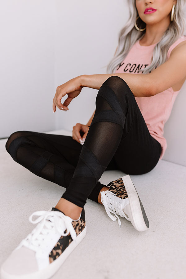 Our sporty black 'Good Karma' legging features soft stretchy material with a figure hugging fit, mesh panels with accent straps, a high elastic waistband, and a sleek pant silhouette that falls into straight ankle length hems! This adorable athleisure piece styles perfectly with a variety of sports bras or tank tops and trendy sneakers for the ultimate workout set!