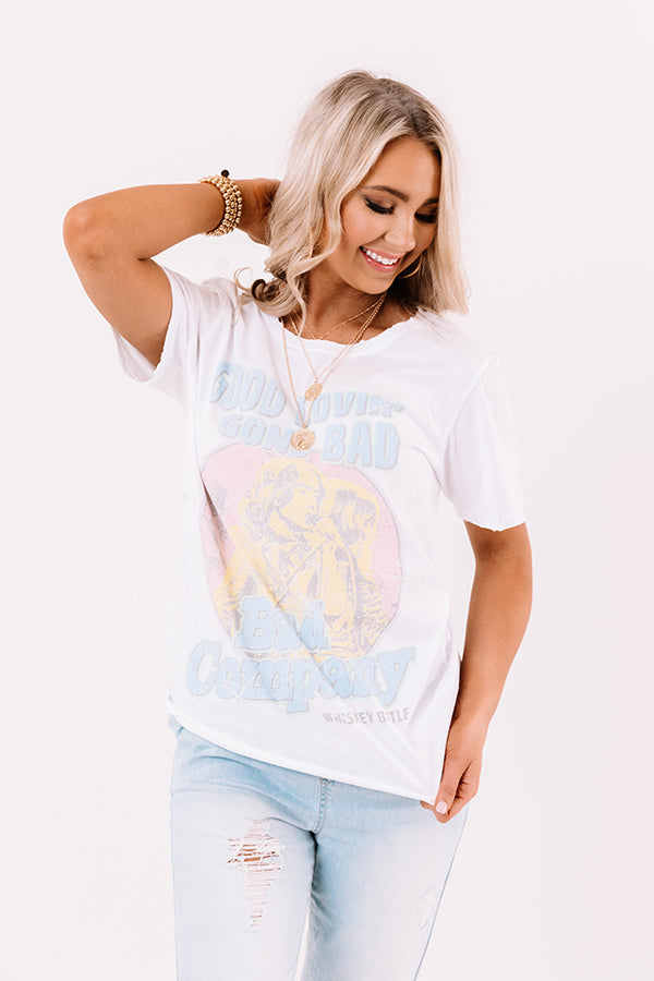 Vintage-inspired Bad Company graphic tee features the 1974 "Good Lovin' Gone Bad" hit from English rock band Bad Company. The Bad Company tee features a crew neckline, relaxed silhouette, and finished with vintage distressing on the edges.