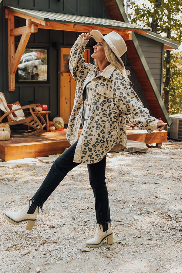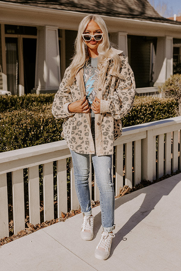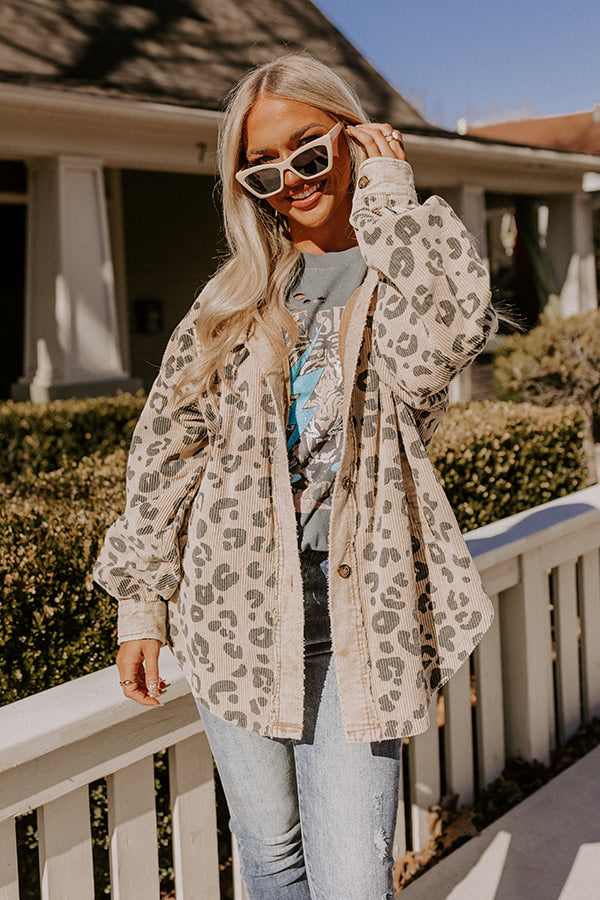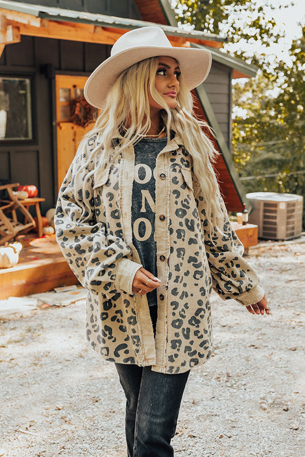 Good Outfit Day Corduroy Leopard Jacket in Beige