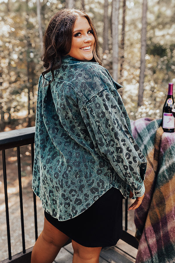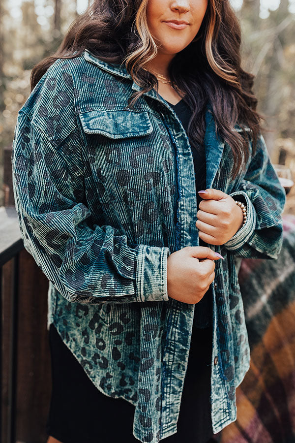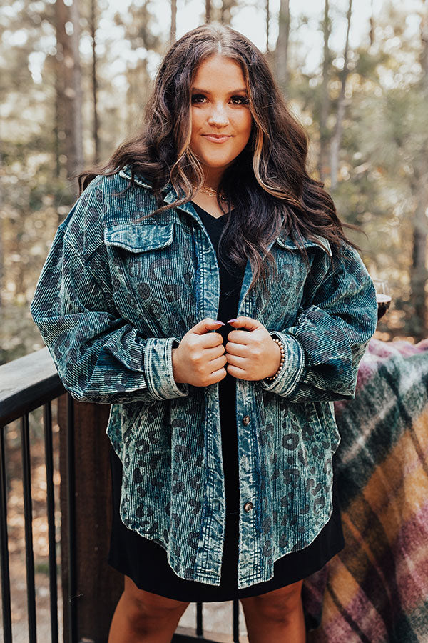 Good Outfit Day Corduroy Leopard Jacket In Teal Curves