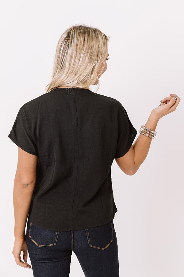 Stay gorgeous in this glimmering black shift top featuring lightweight material covered in shimmering sequins, a v-cut neckline, short sleeves, and a relaxed silhouette that falls into a straight hemline!