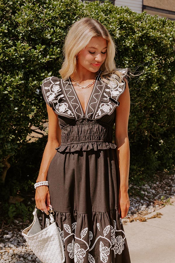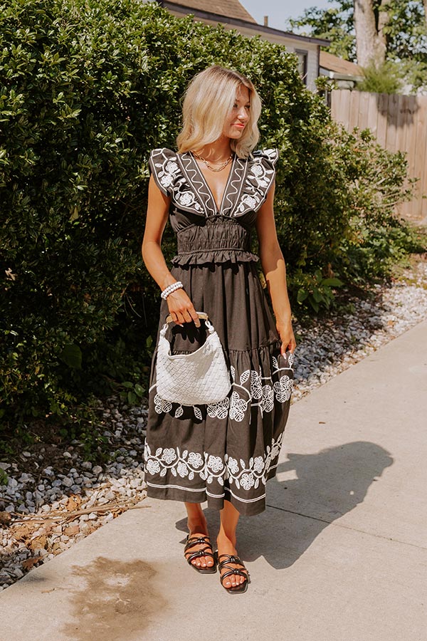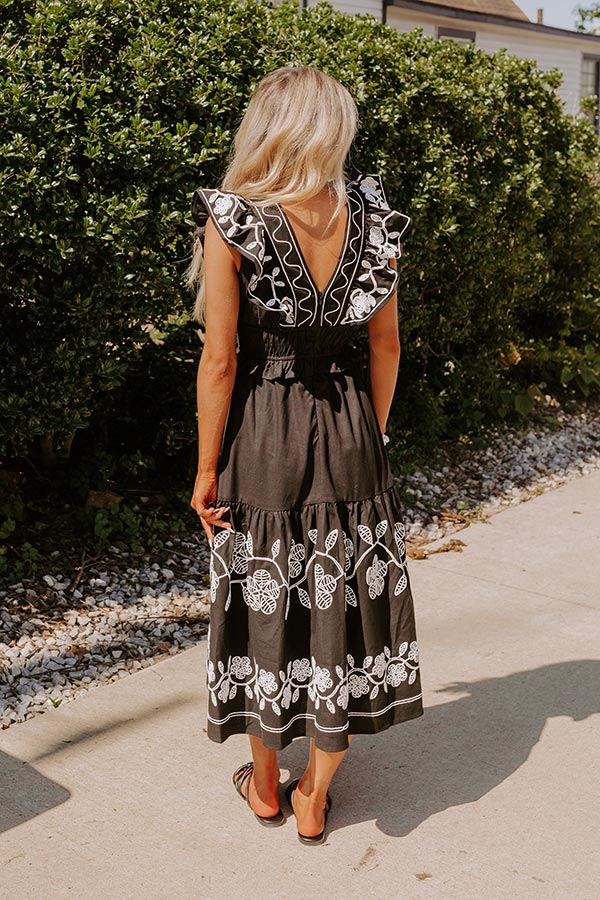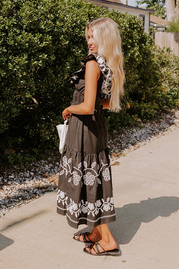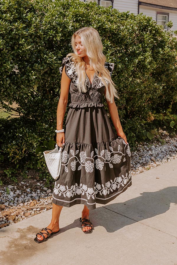 Grace and Glamour Embroidered Linen-Blend Midi