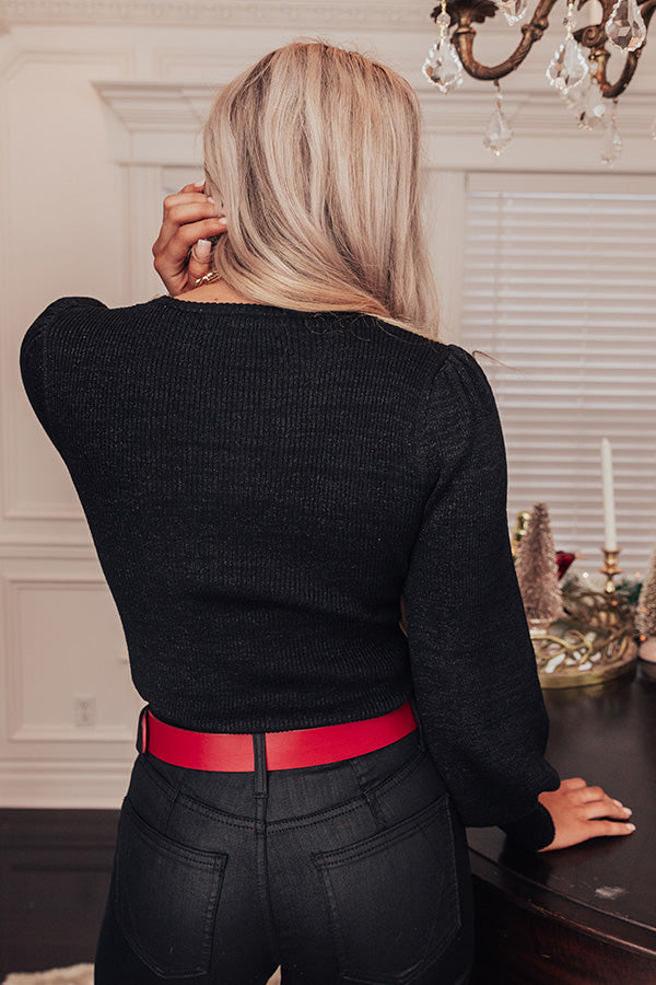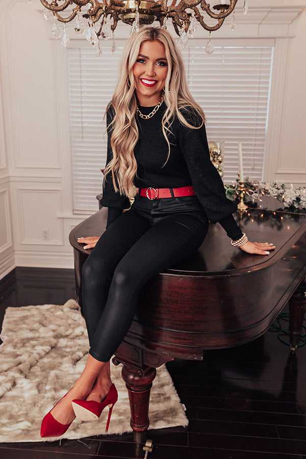 Get ready for the holidays effortlessly with our darling black 'Grand Voyage Bodysuit' featuring lightweight stretchy material with subtle vertical ribbed texturing, a high rounded neckline, long loose sleeves with fitted forearm cuffs, and a flattering form fitting silhouette that falls into cheeky git bottoms with a snap button closure! Measurements