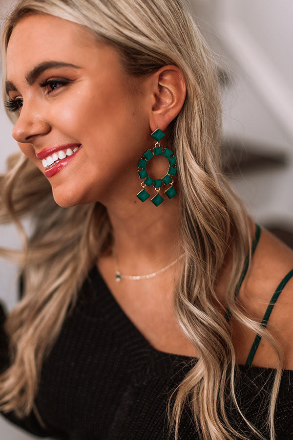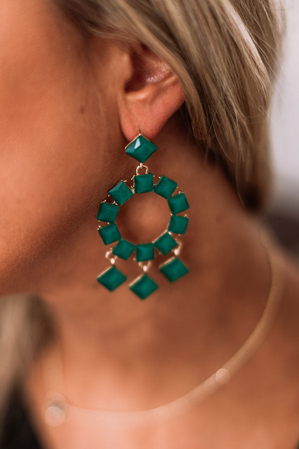 All attention is sure to be on you when you accessorize with our elegant green 'Grand Voyage' statement earrings featuring gemstone diamond studs and large square gemstone hoops with dangling gemstone diamond charms!
