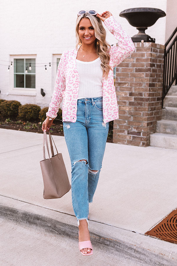 Great minds think alike, which is why we know you'll agree with us that you need to add this luxe cardigan to your cart! It features lightweight material patterned with a large pink leopard print, ribbed trim detailing, long loose sleeves with fitted cuffs, accent side pockets, and a draped button down front silhouette that falls into a straight hemline! Measurements