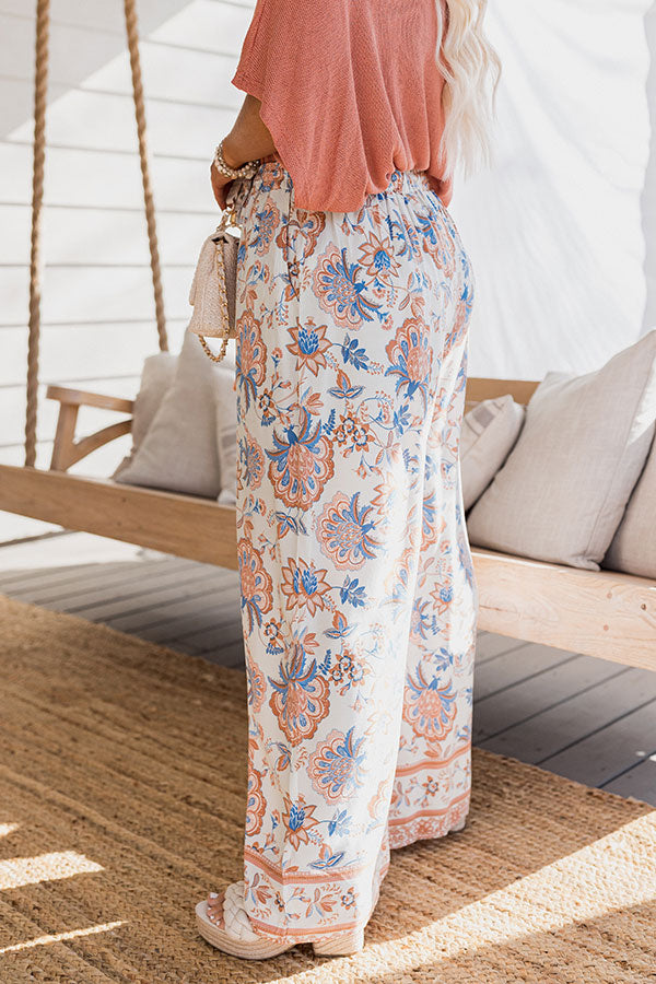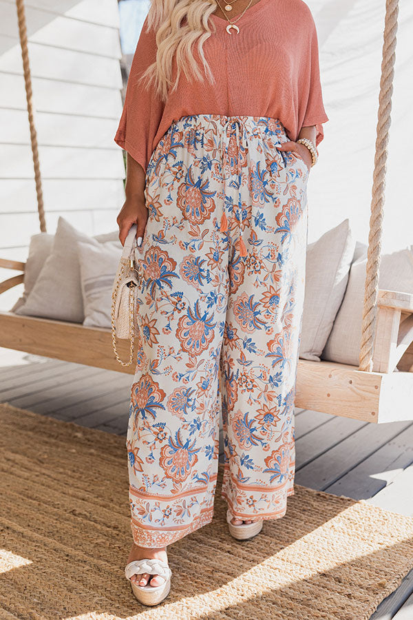 Keep your look breezy and effortless in our adorable plus size 'Gulf Waters' pants featuring lightweight material patterned with a peach and periwinkle hued floral print, a high elastic waistline with a tie closure, hidden side pockets, and a relaxed silhouette that falls straight into ankle-length hemlines!