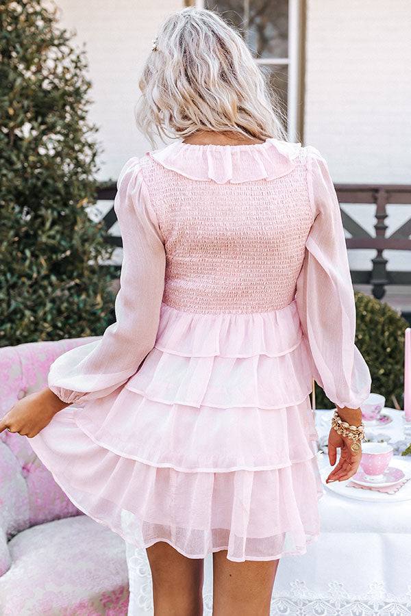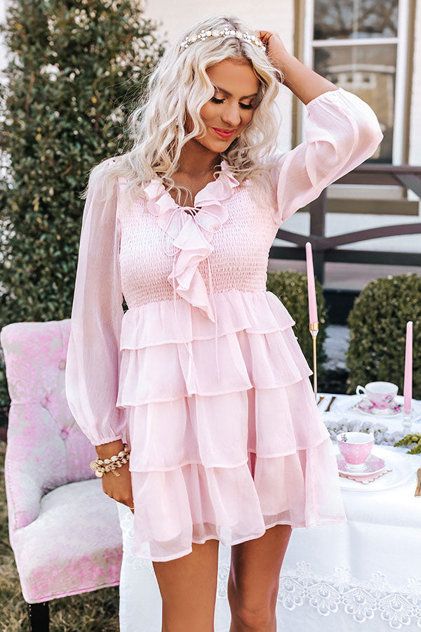 Stay flirty all throughout spring in our adorable pink 'Hamptons Forever' dress featuring lightweight material, a flattering smocked bodice, a deep v-cut neckline with ruffle trim detailing and a tie closure, long loose sleeves, and a relaxed tiered skirt silhouette that falls into a straight mid-thigh length hemline!