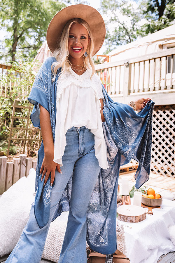 Layer up for the weekend in style with this adorable overlay featuring lightweight material patterned with a cute white boho print, oversized bat wing half sleeves, and an ultra relaxed open front silhouette that falls into an uneven knee-length hemline! You can wear this versatile piece with just about anything from a basic tank and distressed denim to your fave swimsuit! Measurements
