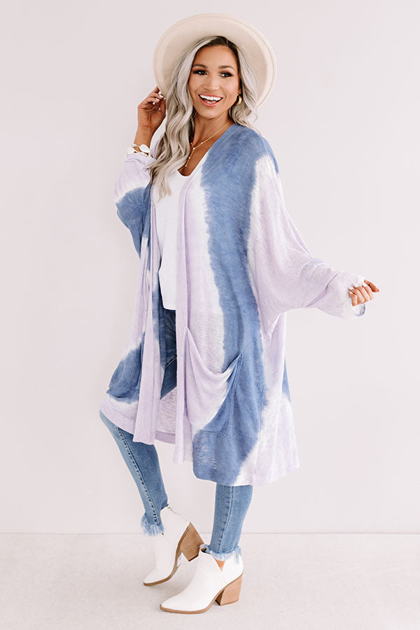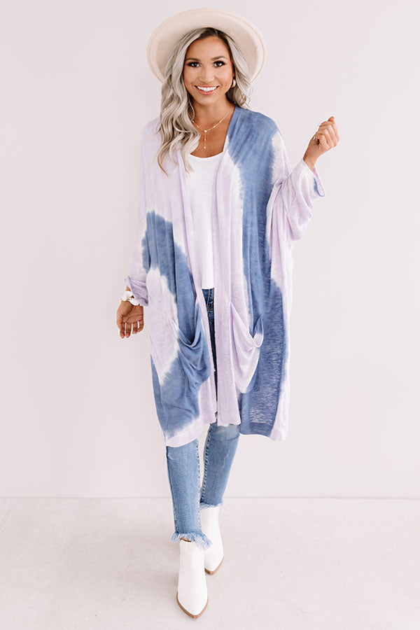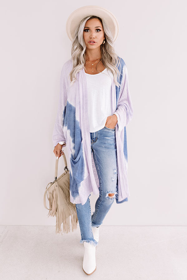 You and this cardigan go "hand in hand" with its soft ultra lightweight material patterned with lavender and blue hued tie dye, long oversized bat wing sleeves, low draped accent side pockets, and a relaxed open front silhouette that falls into a straight knee-length hemline! You can style this versatile piece with just about anything from a basic tank to a sweater, jeans to dresses, wedges to sandals, clutches to totes, and hats to earrings for a variety of cold weather ready looks! Measurements