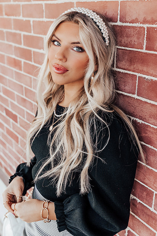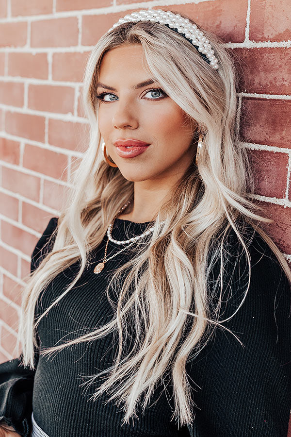 Add an elegant touch to your look with our beautiful black 'Hang Onto Love' headband featuring a wide structured band with pretty pearl detailing!