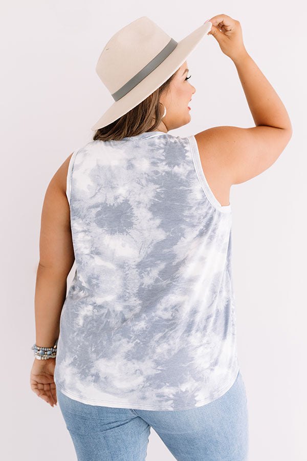 Plus Size - Enjoy your day in our "Happy Afternoon" shift top featuring lightweight material patterned with light navy hued tie dye, a scooped neckline with a v-notch accent, wide 3-inch sleeveless shoulder straps, and a relaxed silhouette that falls into a straight hemline! We have styled this trendy piece with some distressed light wash flares, an embellished clutch, and a wool hat, but you can also wear it layered under a jean jacket with some frayed white shorts and "The Alba Wedge in Navy!"