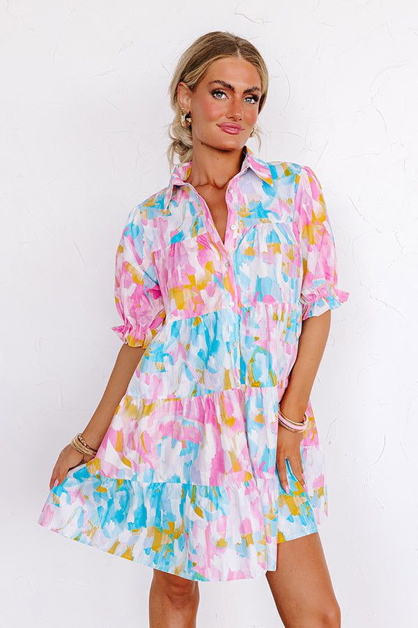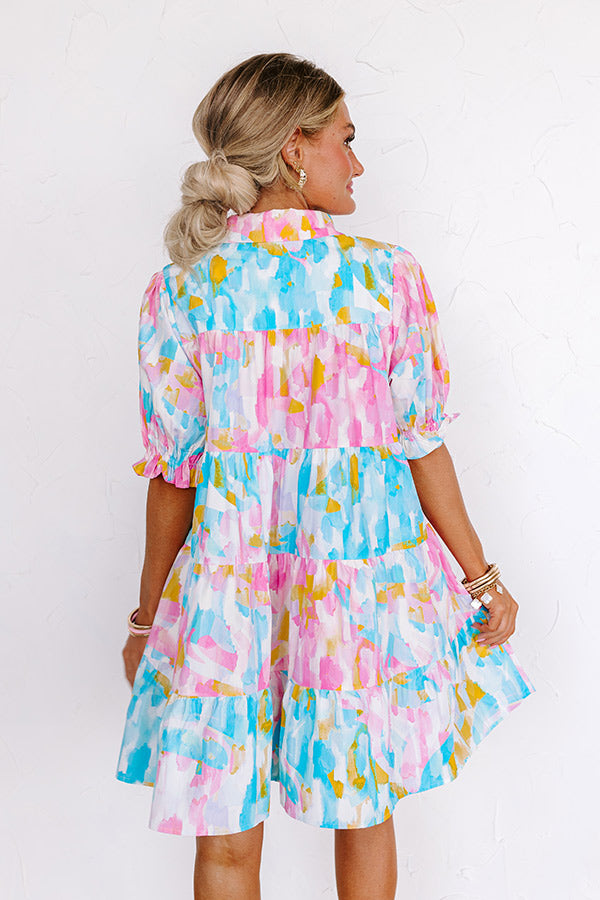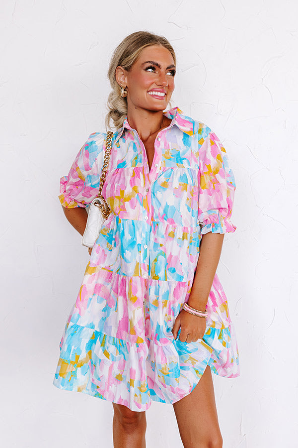- Twirl into vibrant style with this adorable dress. Its colorful design, collared neckline, and puff sleeves give it a playful charm. You are sure to look sweeter than cotton candy kisses in this cutie!