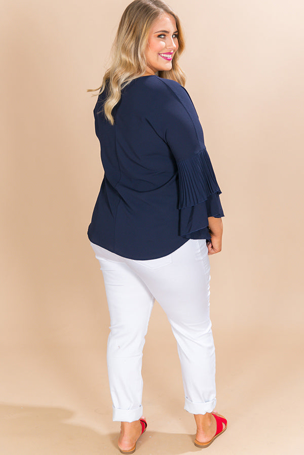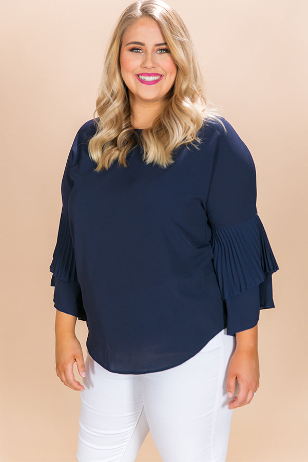 Every closet needs a go-to top that's perfect for a last minute date or happy hour plans... And we have found the perfect top for you! This fabulous navy top has pleat accented dual layered bell sleeves & a relaxed poly bodice that you are sure to adore. Style this babe with your favorite skinny jeans, sassy heels & a cute clutch for the perfect look for your next girls night out or dinner date!