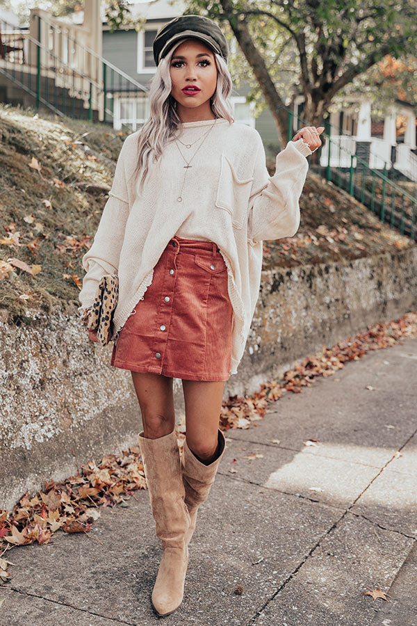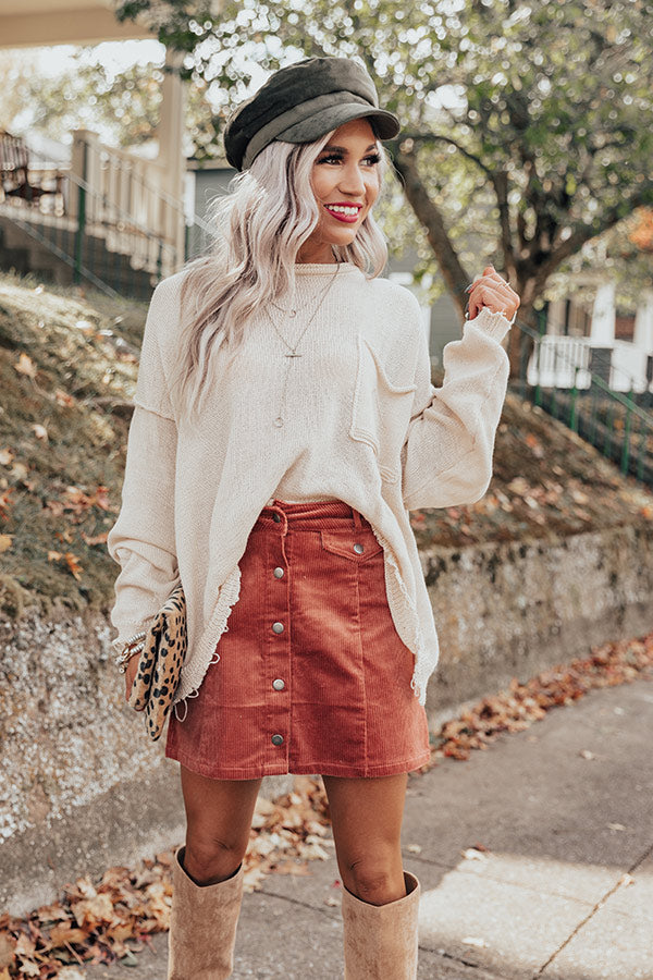 We feel like this sweater is a "once in twenty lifetimes" kind of love. Our 'Happy On The Highline' Shift Sweater features a trendy raw split hem, a sewn on pocket, a high rounded neckline, and exposed seams at the shoulders and neck. The cozy knit top also features raw-edged sleeves and a relaxed fit. Measurements