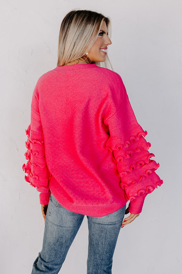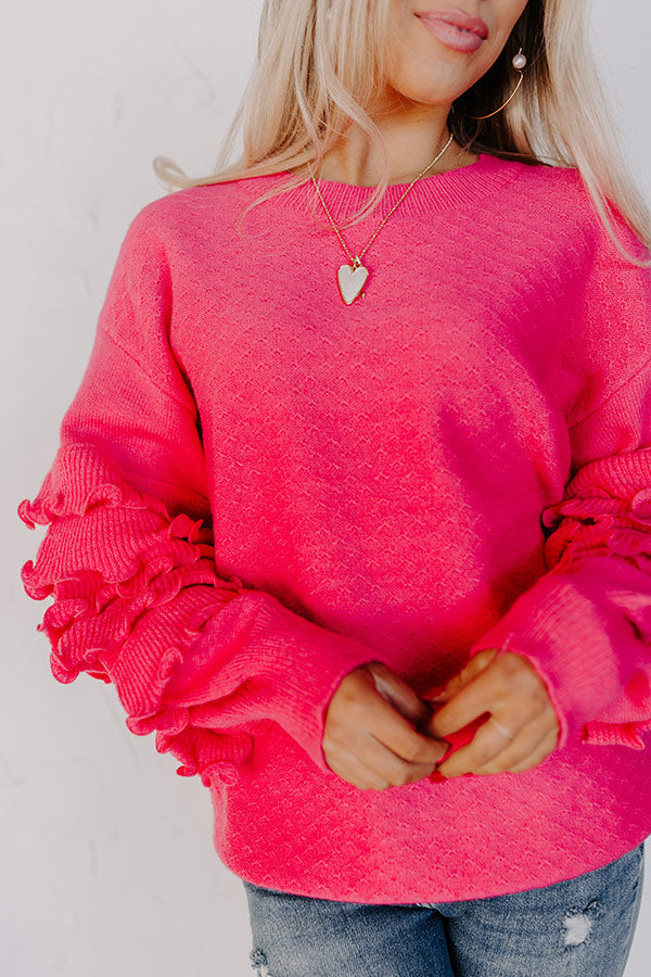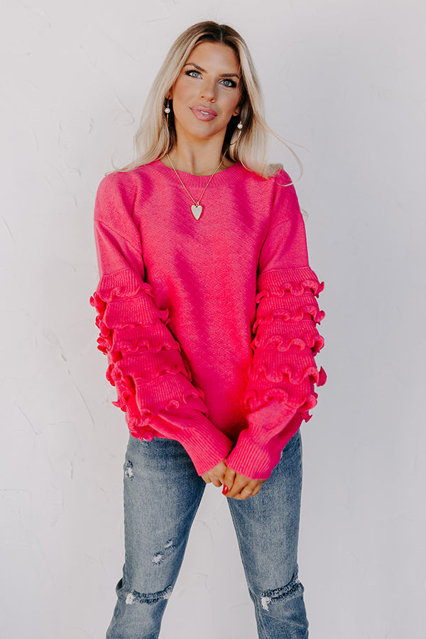 – Long loose sleeves with layered ruffle accent and fitted cuffs