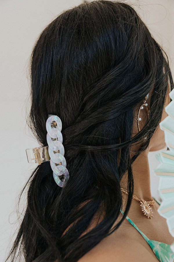 We don't blame your for adding this adorable hair claw clip to your cart...it's hard to resist with its cute white resin chain detail!